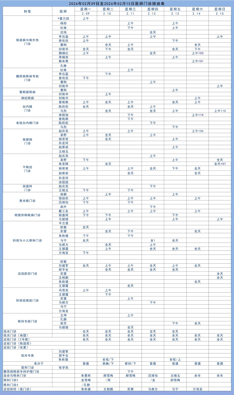 理想眼科专家排班表