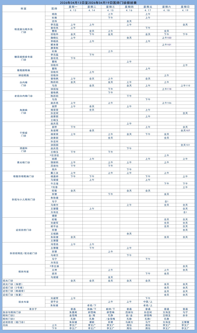 · 眼底病专家李志清教授4月19日全天门诊