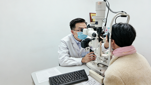 ▲图源:图为青光眼患者姚鹏主任正在为患者检查